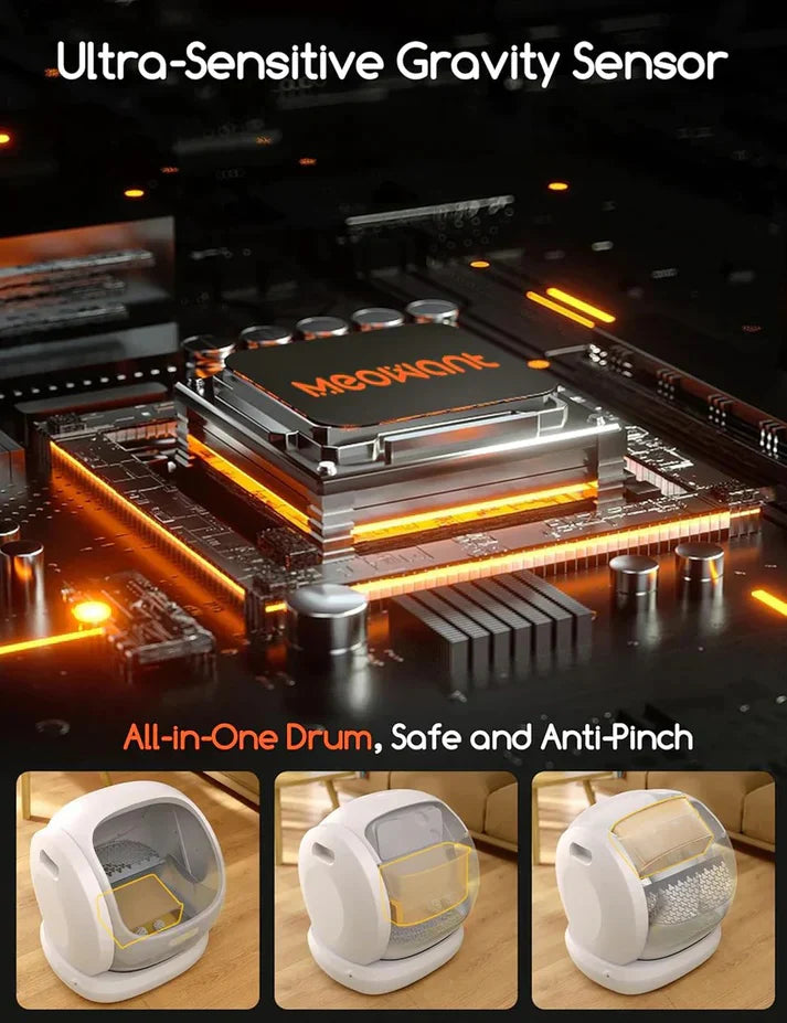 Real-time app alerts keep you informed of any issues, right from your phone. With intelligent safety features and hands-free convenience, it delivers a hygienic, stress-free litter experience for both cats and their owners.